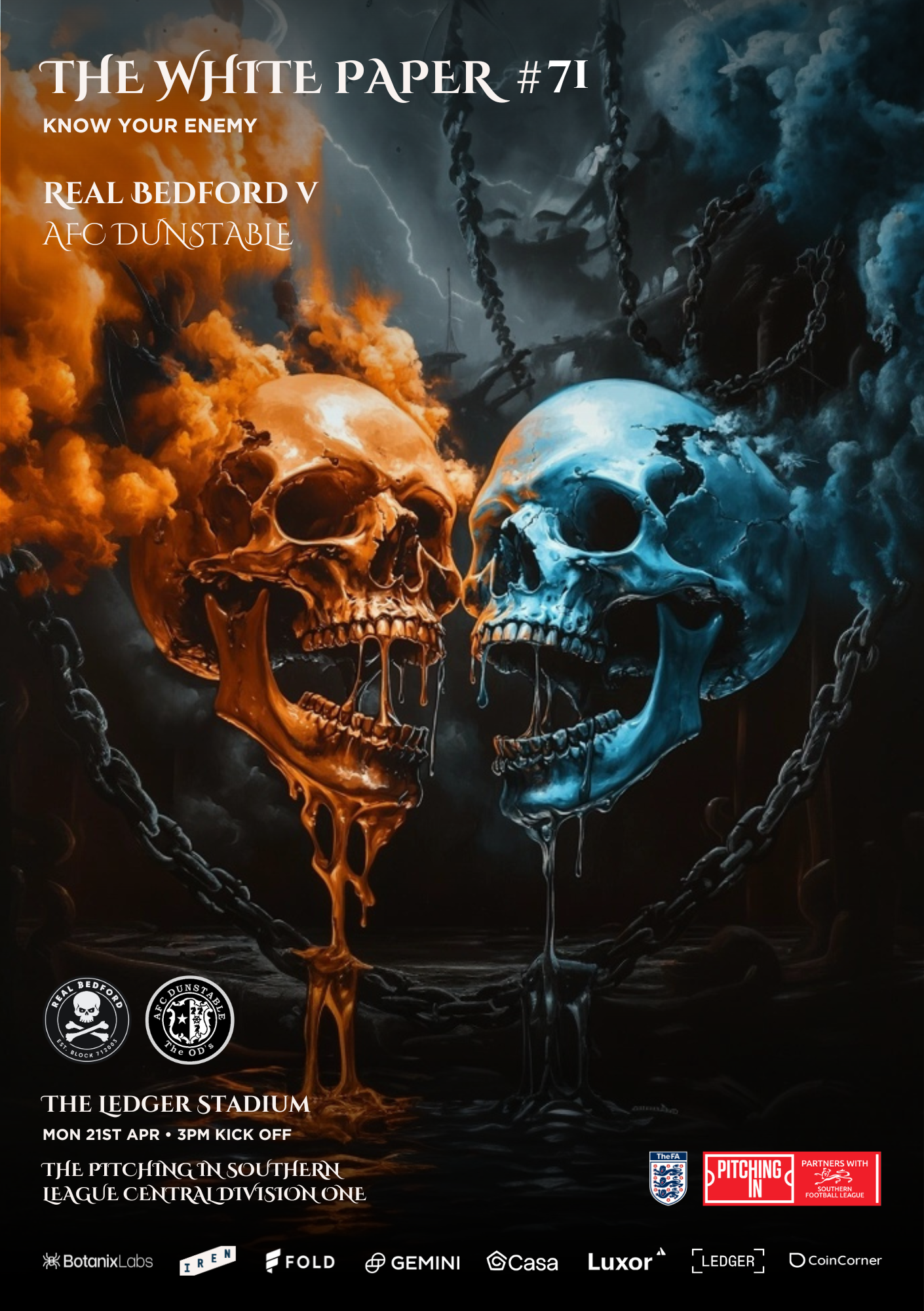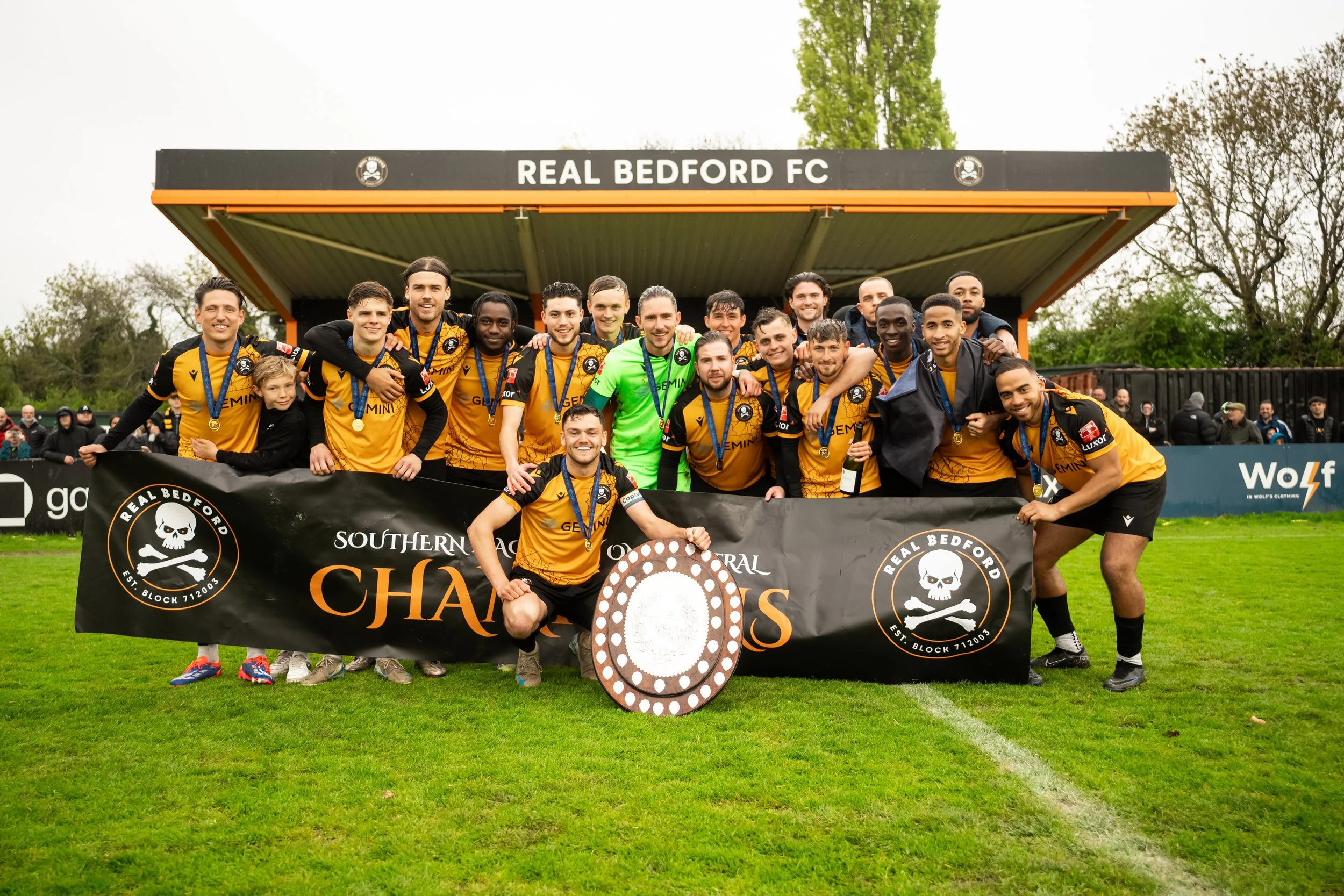 Real Bedford reached 100 league points with a game to spare, beating AFC Dunstable 3-1 at the Ledger Stadium, while also being presented with the League Trophy. Ben Stevens, Eniola Agemoh-Davies and Joey Evans scored the goals for the Pirates in their 15th home win of the league campaign.